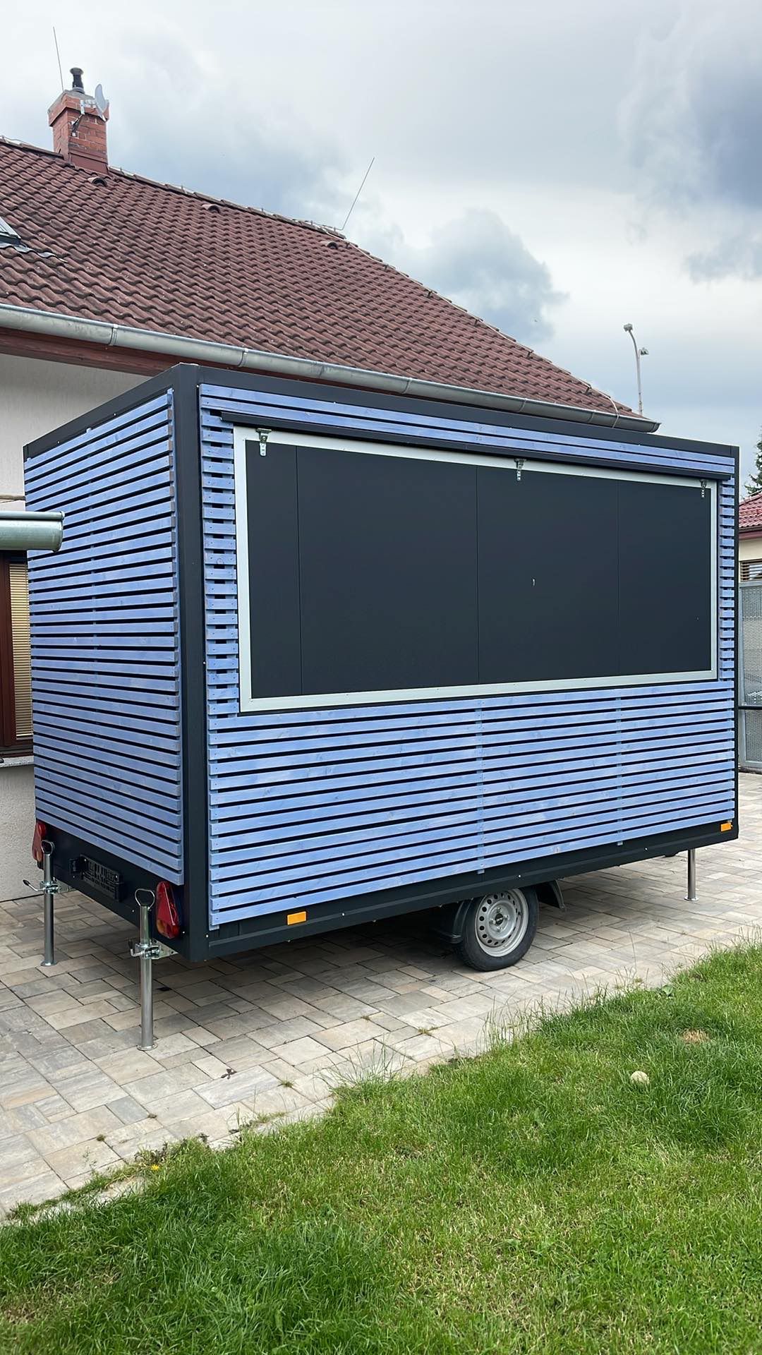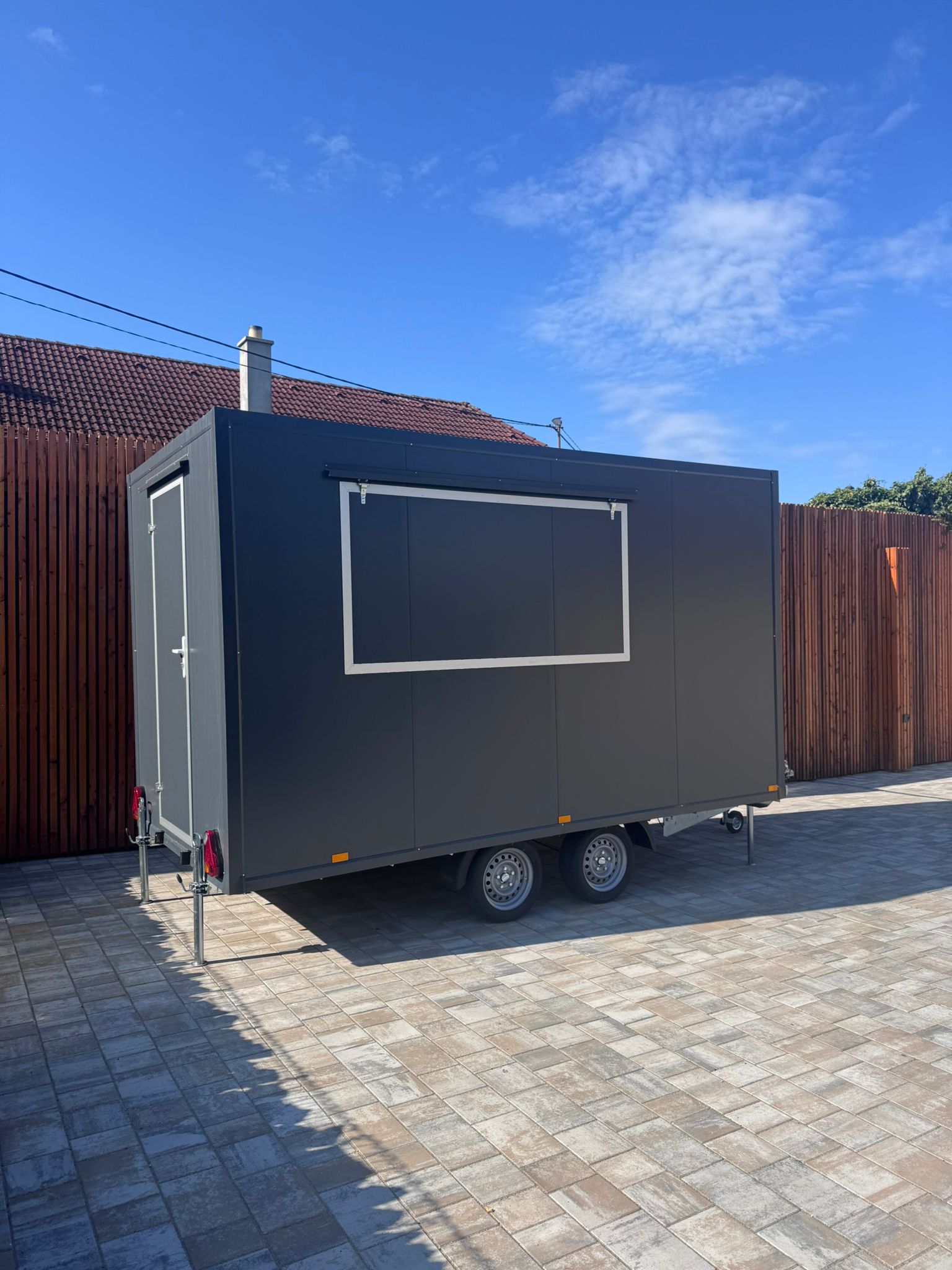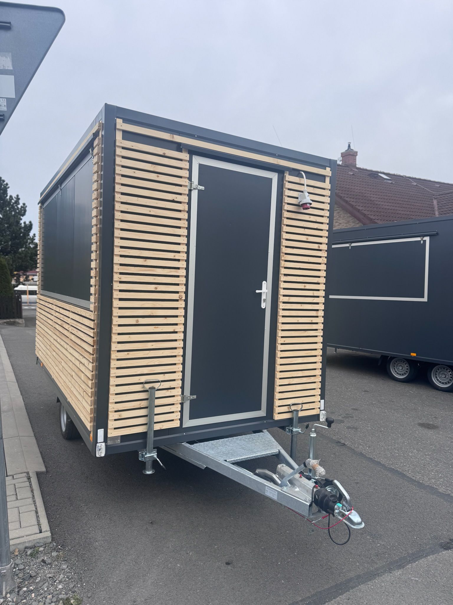 Ultra-mobilní food-trailer bez nutnosti rozšířeného ŘP, hladké sendvičové panely a uzamykatelné dveře zaručují rychlé nasazení – ideální pro kávu „to go“, limonády i merchandising na sportovních a kulturních akcích.