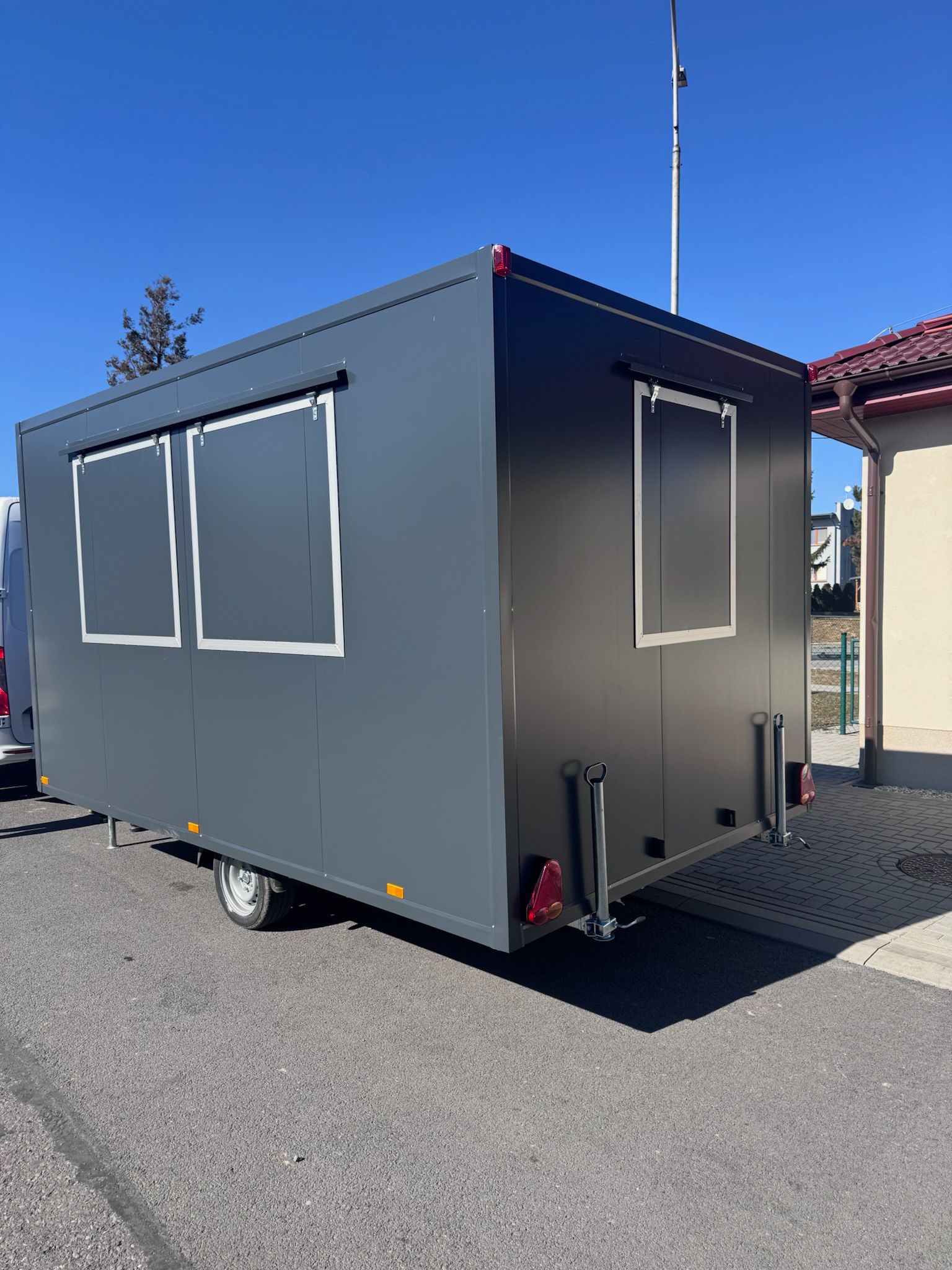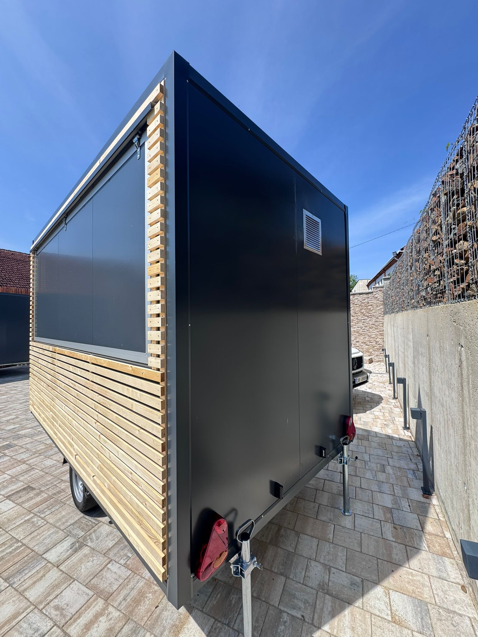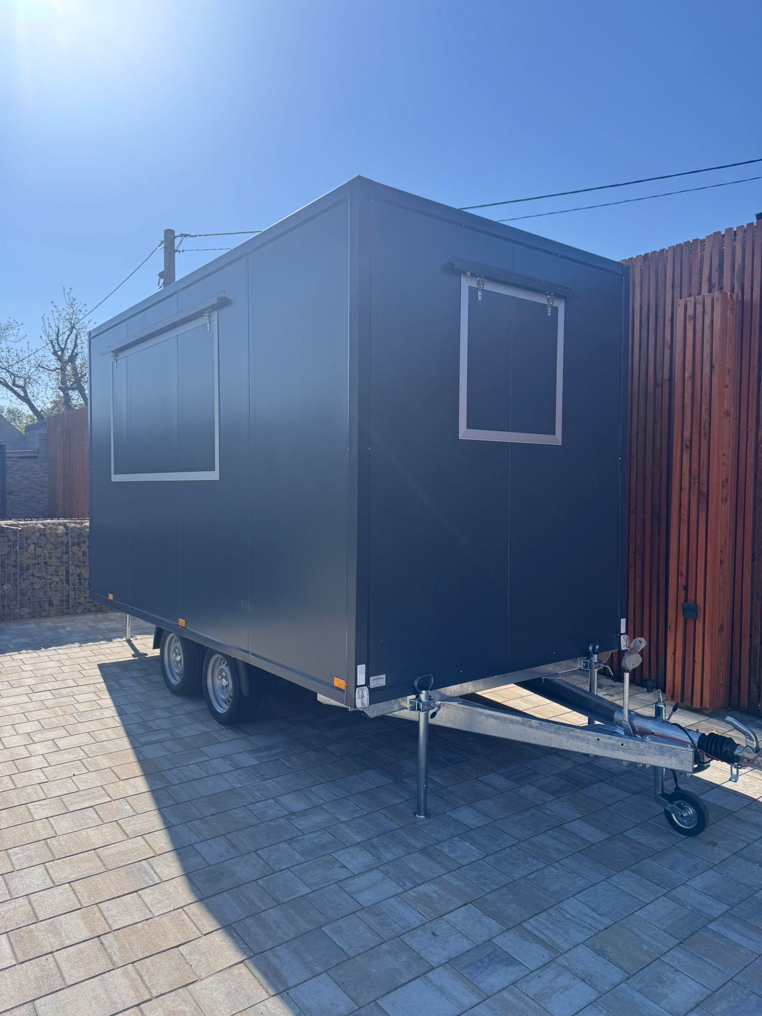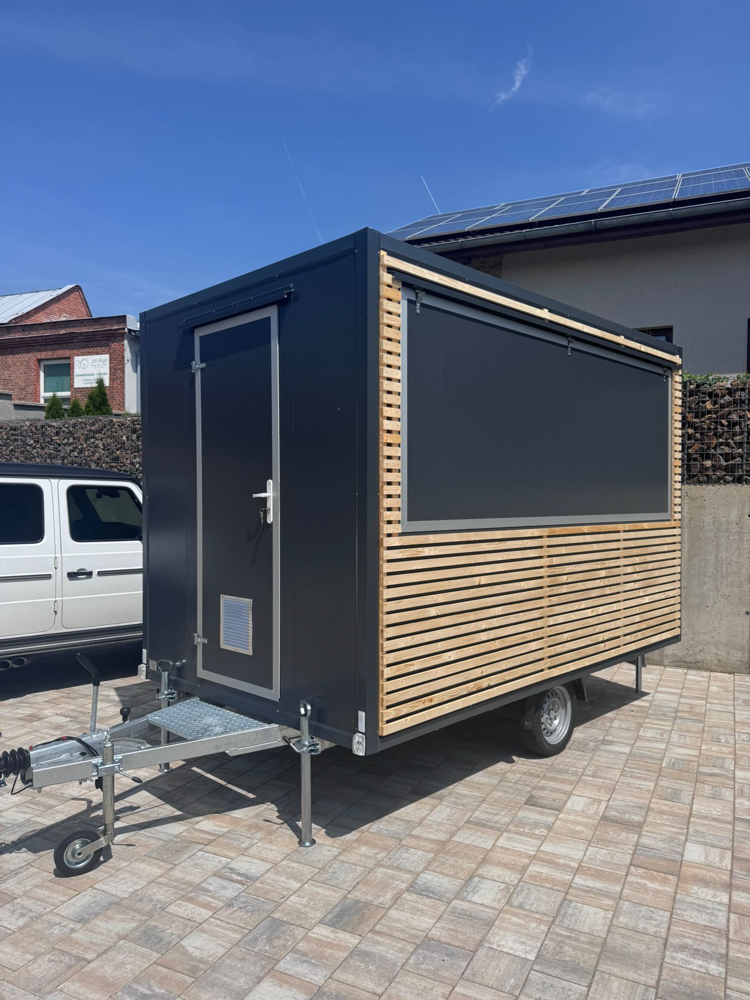 Ultra-mobilní food-trailer bez nutnosti rozšířeného ŘP, hladké sendvičové panely a uzamykatelné dveře zaručují rychlé nasazení – ideální pro kávu „to go“, limonády i merchandising na sportovních a kulturních akcích.